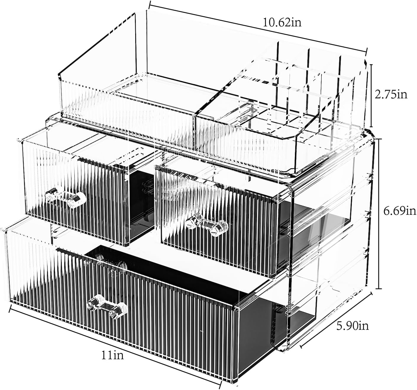 ZHIAI Stackable Cosmetic Organizer, Acrylic Cosmetic Organizer for Dresser, Vanity, Kitchen Cabinet, Bathroom, Under Sink, Home Organization and Storage (1 Top 3 Drawers)