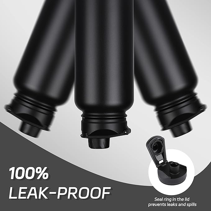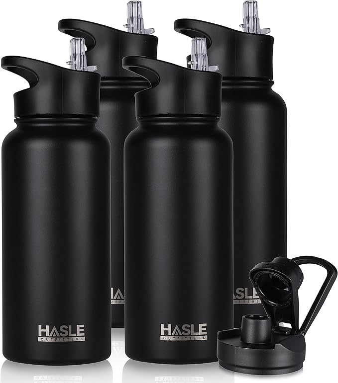 HASLE OUTFITTERS 32 oz Insulated Water Bottle Stainless Steel Double Walled Vacuum Sports Water Bottle with 2 Lids (Straw and Spout Lid) for Gym Camping Hiking(Black,4)