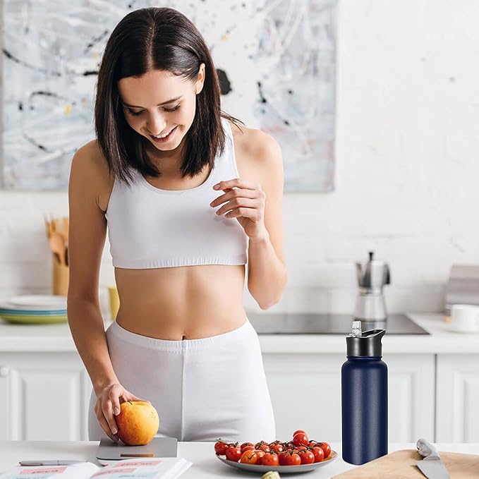 VEGOND 32 oz Insulated Water Bottle Bulk Stainless Steel Metal Water Bottles with Leak Proof Straw Lid & Spout Lid, Wide Mouth Double Walled Vacuum Travel Sports Bottle, 8 Pack
