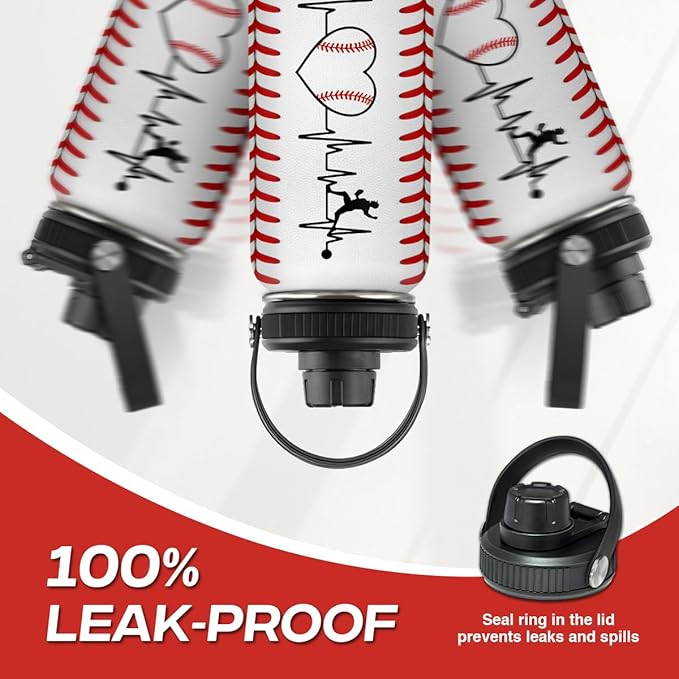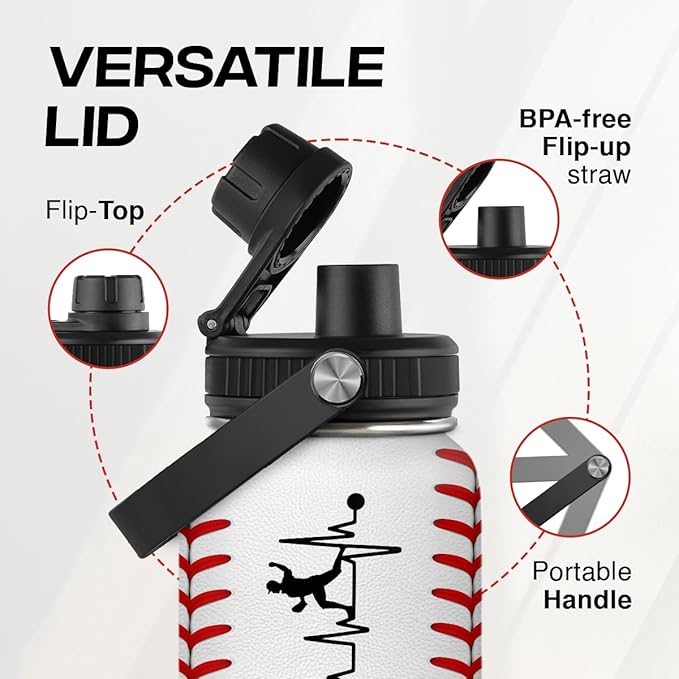 Baseball Water Bottle 32oz Stainless Steel Insulated Bottle for Men, Women, Sports Lovers - Baseball Gifts for Birthday, Christmas