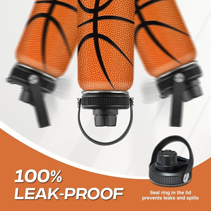 Basketball Water Bottle 32oz Stainless Steel Insulated Bottles for Men Women Sports Lovers Fan Players Coach - Basketball Gifts for Birthday Christmas