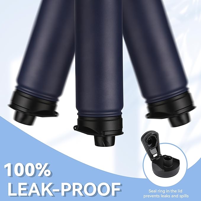 HASLE OUTFITTERS Insulated Water Bottle 22 oz Double Wall Stainless Steel Water Bottle Wide Mouth with Straw Lid & Spout Lid Keeps Cold or Hot(Navy,4)