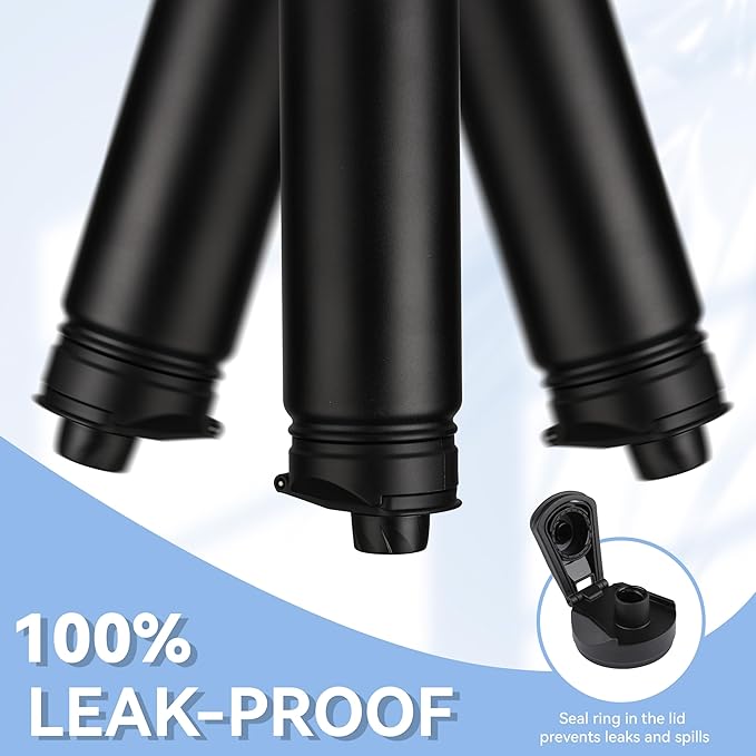 - 【Spout Lid & Straw Lid】 This water bottle comes with 2 lids: an innovative leak-proof spout lid and a newly improved straw lid that has been enhanced for better flow. Easily fill your water bottle with ice and clean it through the wide mouth opening. Both allow easy one-handed or hands free sipping, they are designed for you to drink anytime, anywhere.