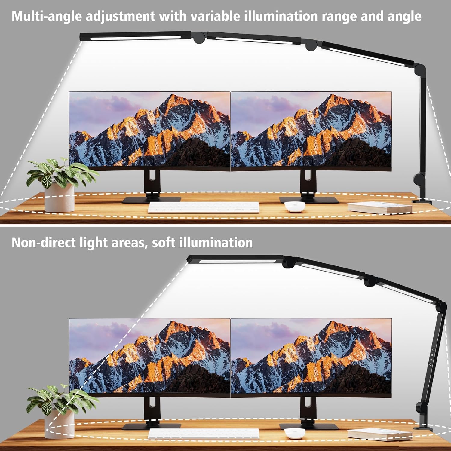LED Desk Lamp with Clamp,Adjustable Swing Arm Desk Lamps for Home Office,Dimmable Tempering Eye Care Desk Light Bright Modern Led Table Lamp for Nail Tech Architect,Flexible Tall Task Table Light