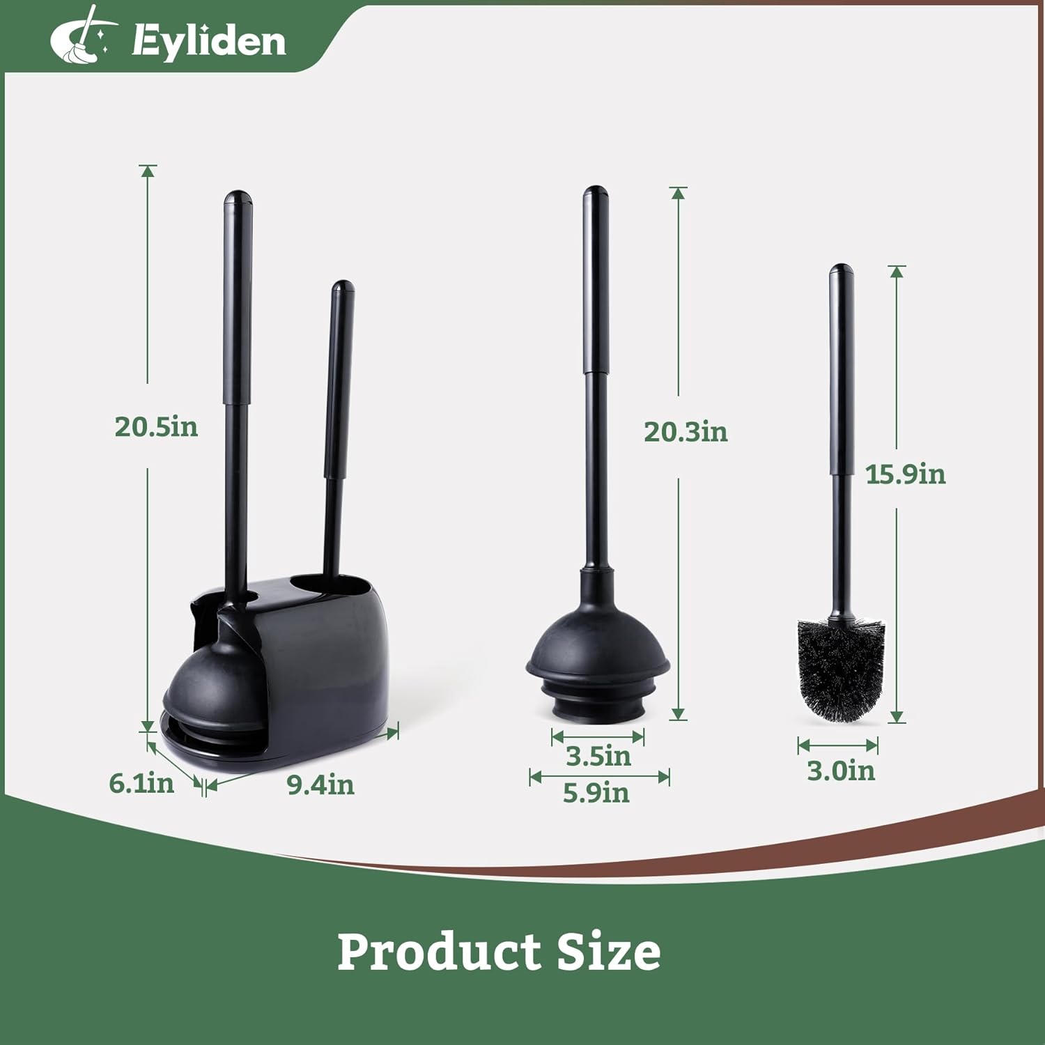 Eyliden 2 Pack Toilet Plunger & Brush Set, Upgrade 3-Step Suction Cup - Ultra-Tight Seal, Durable, Space-Saving Toilet Deep Cleaning Combo with Holder, Bathroom Essentials (2 Pack, Black)