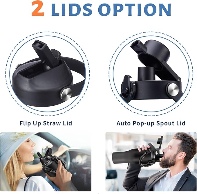 - LEAK-PROOF STRAW LID & AUTO SPOUT LID: This stainless steel metal tumbler flask and chug lid, both BPA-free, leak-proof and one-hand conctorl design, great car must have things!