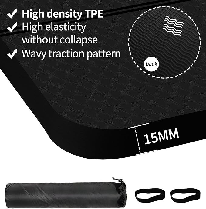 - 🌹EXTRA LONG EXTRA WIDE: nuveti's 72"x32"/78"x36" offers adequate space to fit any type of exercise like yoga, pilates, bikram, and fitness exercise.Most yoga mats on the market are 6mm, 8mm or even thinner. This yoga mat is thickened to 15mm,20mm,30mm which can provide more support and protection for your ankle, knees, joints, and body on hard floors, as well as absorbs vibration and reduces noise.