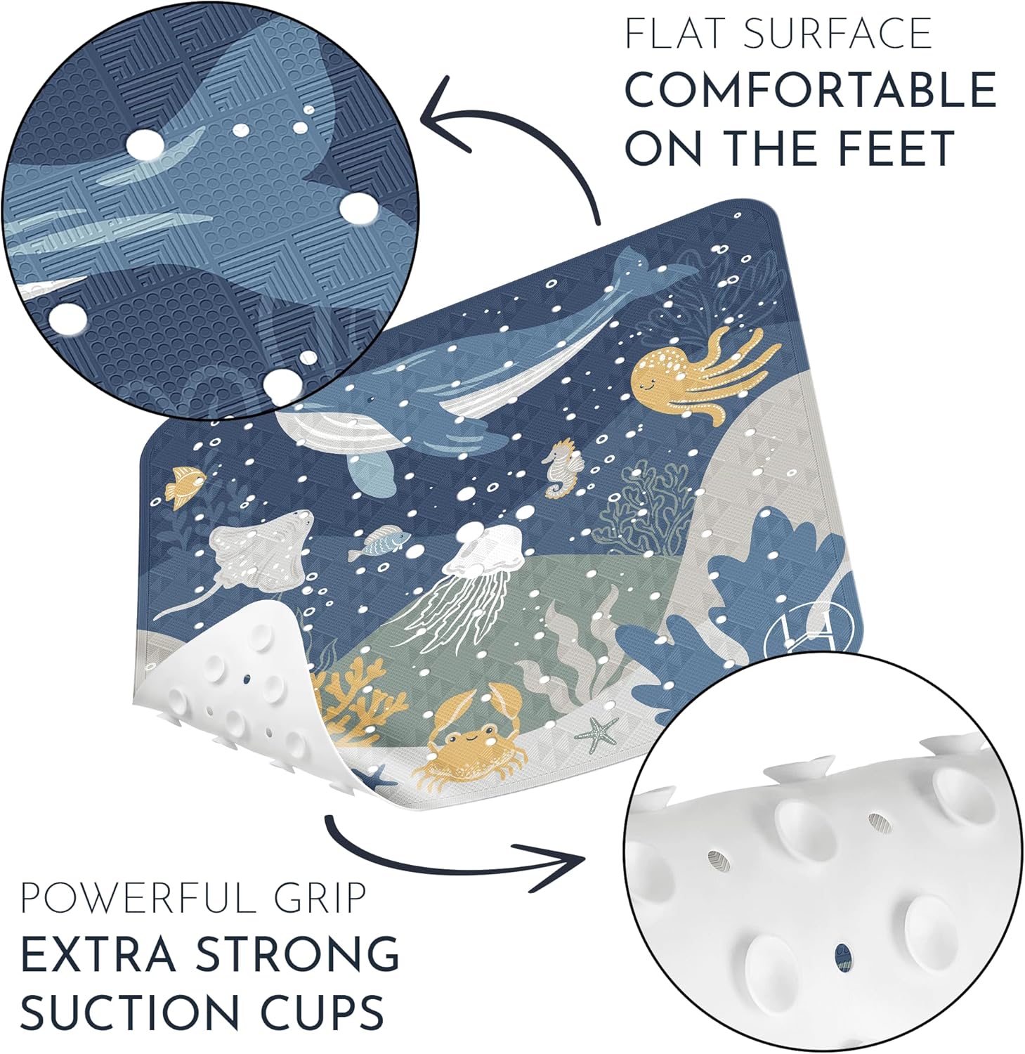 - Soft & Gentle! This super comfortable bath mat for baby has over 200 suction cups for secure grip and a special top anti-slip structure for firm footing! Our odorless bath tub mat non slip is also latex- and phthalate free!