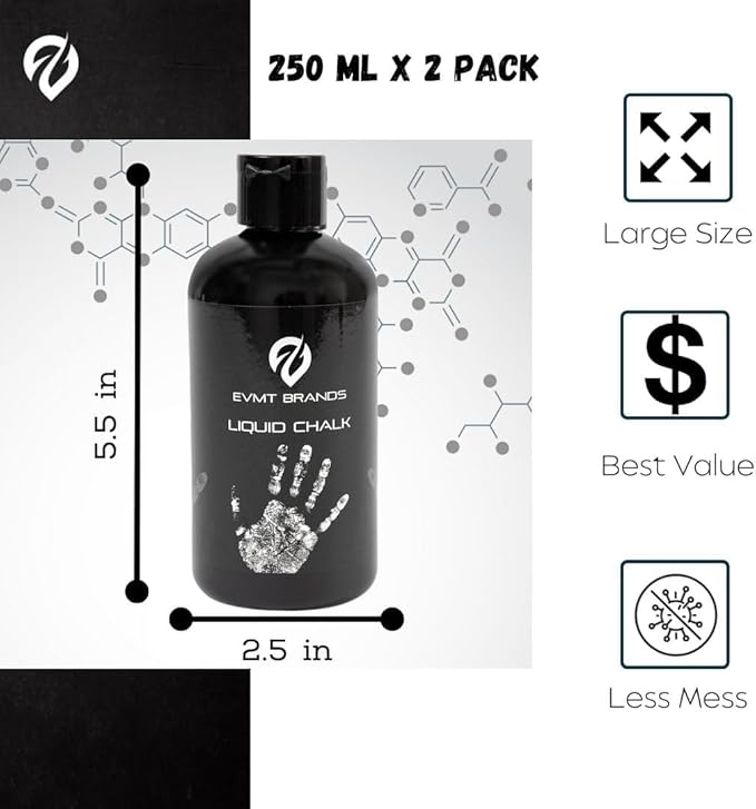 - Compact Travel-Size Liquid Hand Chalk Bottle – Skin-safe, quick-absorbing chalk for weightlifting, gymnastics, and rock climbing; made with premium ingredients to ensure long-lasting friction and palm dryness.