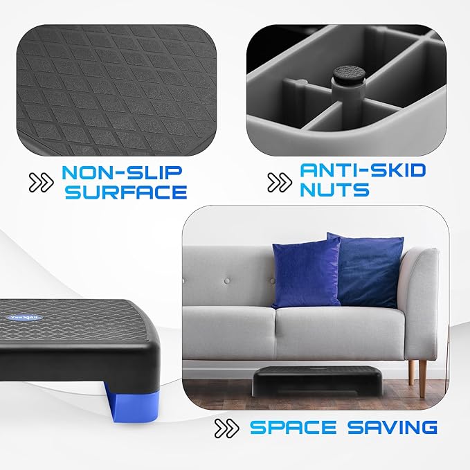 - MULTI BENEFIT WORKOUT EQUIPMENT: Offer a multitude of benefits such as building strength, maintain your body weight, tone and elevating flexibility; The mini step riser is ideal for all ages & fitness levels