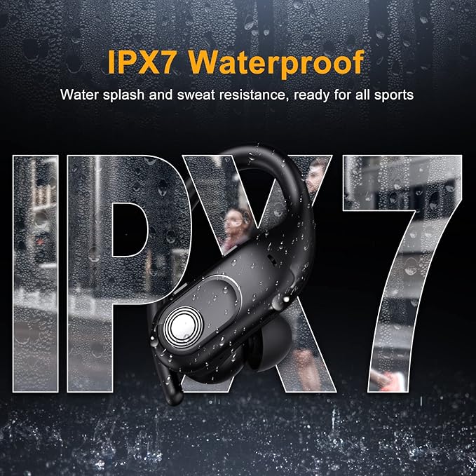 - IPX7 Waterproof: These wireless sport headphones are rating at IPX7 waterproof, the surface of both in ear earbuds is sealed to prevent sweat or rain from entering, and the internal nano-coating to airborne moisture from damaging the components. Protects the Bluetooth earbuds from slight raindrops or sweat during intense workouts. Widely applied to running, exercises, gym, travel, even on a rainy day.