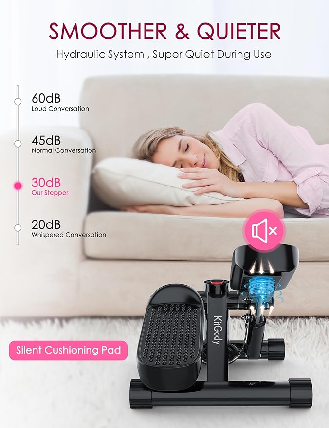 - Super Quiet Design: The bottom of the portable mini stepper with resistance bands is equipped with a 3D shock-absorbing pad; During exercise, it operates at a decibel level of 30 dB, ensuring a quiet workout that does not disturb other people