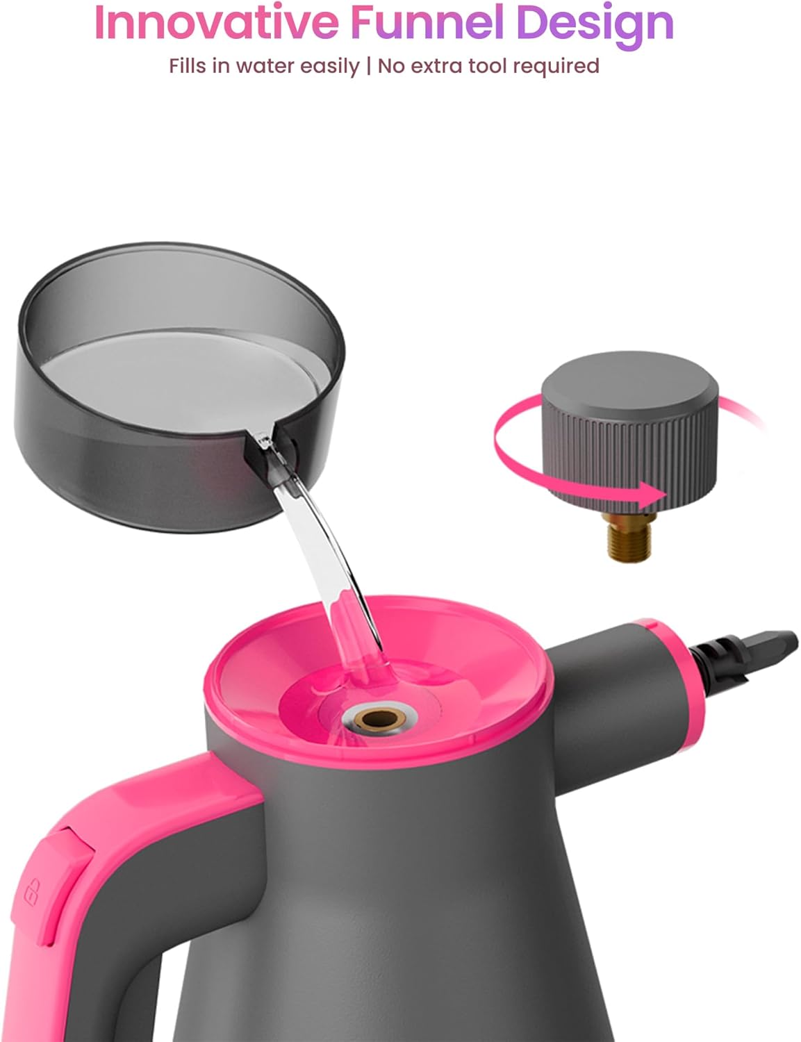 - [Innovative Water Filling Design] Say goodbye to the hassle of measuring cups with our innovative funnel design. This user-friendly feature allows for easy water refilling, streamlining your cleaning process and saving you time.
