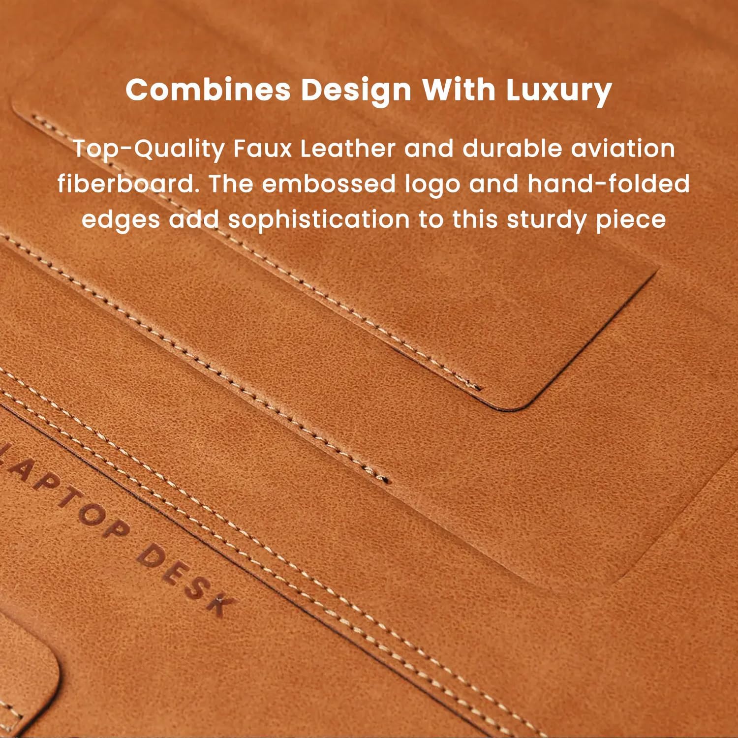- Sleek and Sturdy Construction: Meticulously handcrafted with a premium vegan soft-touch outer layer and reinforced with aerospace high-strength fiberboard, the lap desk exudes elegance. The addition of four classic rivets at the corners not only enhances its aesthetic appeal but also ensures durability. Boost your productivity with this flawless companion.