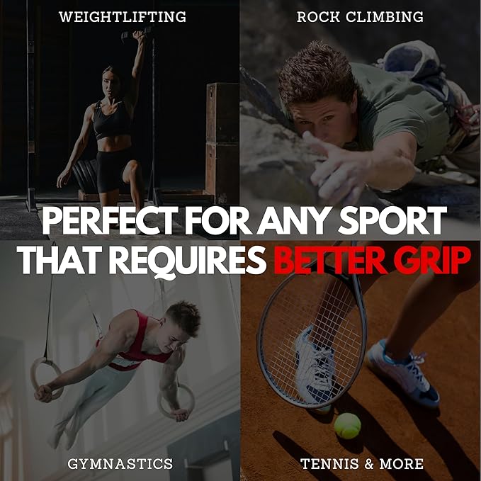 - KEEPS HANDS DRY - Our zero-slip formula is designed to eliminate sweat, keep your hands dry, and provide you with ultimate grip. Whether you're lifting heavy, swinging from bars, or scaling a climbing wall, we've got you and your hands covered. Literally.