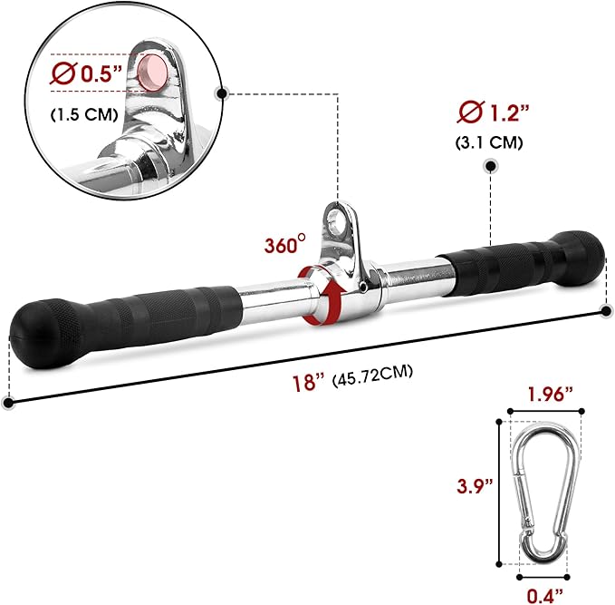 - SMOOTH ROTATION: Straight bar's 360-degree swivel allows for seamless rotation, reducing strain on wrists and joints; The pull down bar is compatible with cable machine systems in both home and commercial gyms