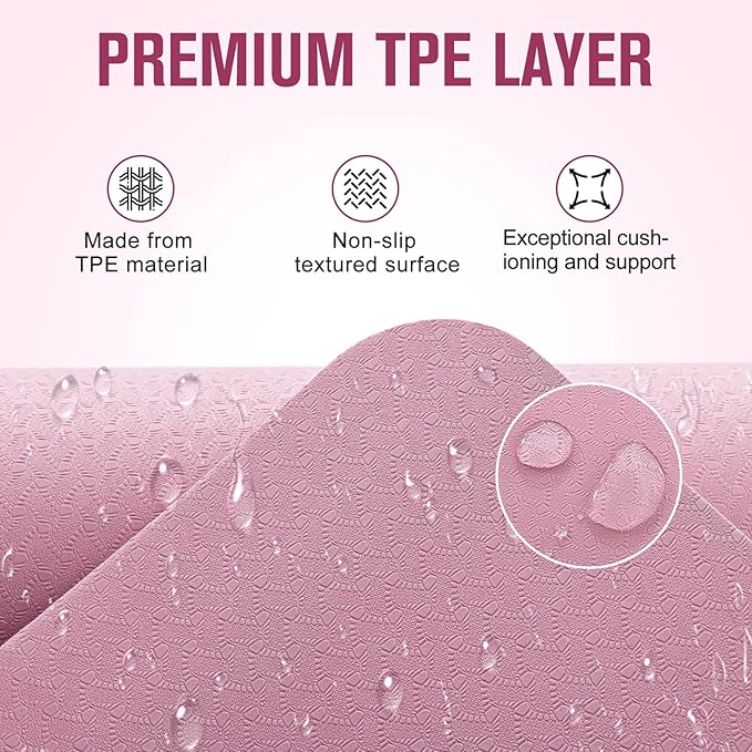 - NON-SLIP & ECO-CONSCIOUS: This thick exercise mat combines natural rubber and recyclable TPE for a durable and eco-friendly practice. Its textured surfaces on both sides ensure a secure grip. And the rubber layer provides exceptional grip even during sweaty sessions.