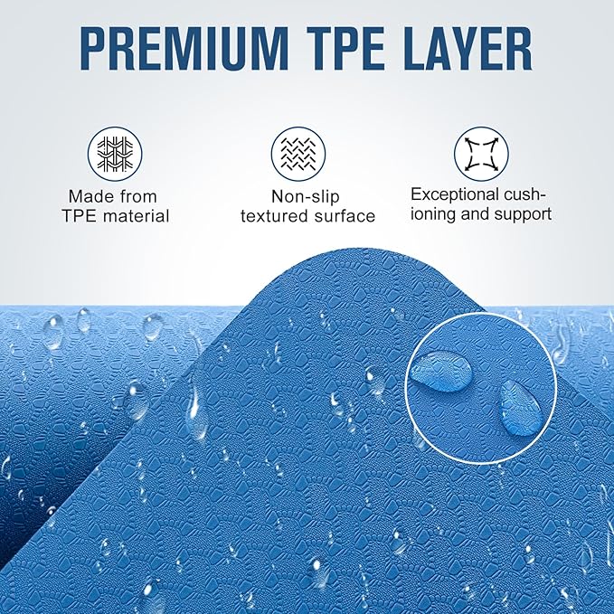 - NON-SLIP & ECO-CONSCIOUS: This thick exercise mat combines natural rubber and recyclable TPE for a durable and eco-friendly practice. Its textured surfaces on both sides ensure a secure grip. And the rubber layer provides exceptional grip even during sweaty sessions.