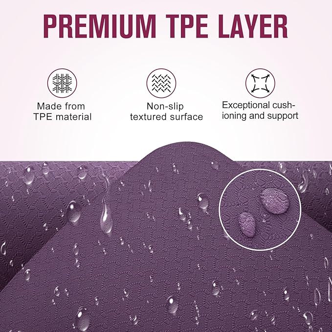 - NON-SLIP & ECO-CONSCIOUS: This thick exercise mat combines natural rubber and recyclable TPE for a durable and eco-friendly practice. Its textured surfaces on both sides ensure a secure grip. And the rubber layer provides exceptional grip even during sweaty sessions.