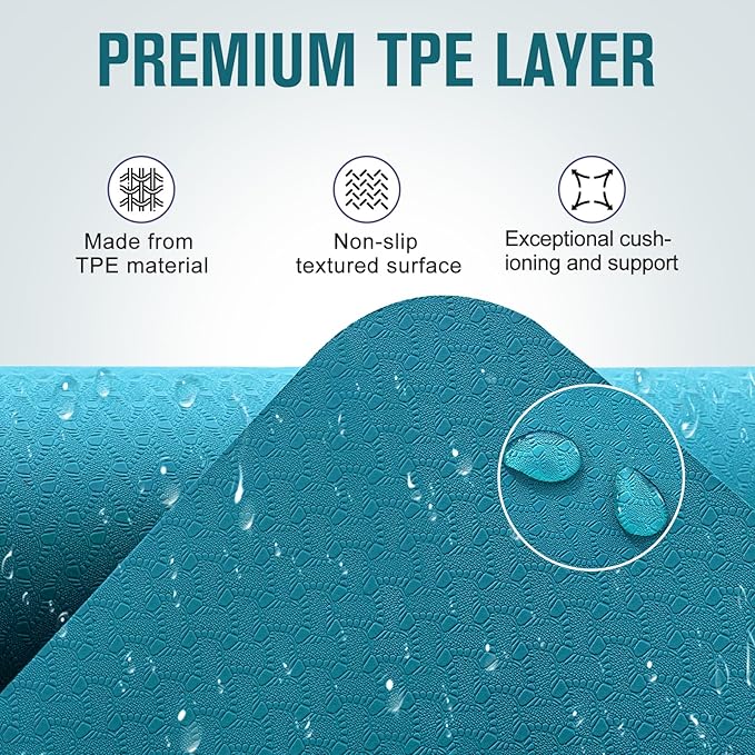 - NON-SLIP & ECO-CONSCIOUS: This thick exercise mat combines natural rubber and recyclable TPE for a durable and eco-friendly practice. Its textured surfaces on both sides ensure a secure grip. And the rubber layer provides exceptional grip even during sweaty sessions.