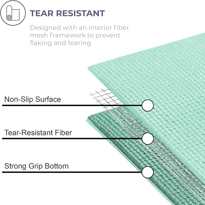 - Non-Slip: The fitness mat features a textured surface for stability and balance when changing or maintaining poses; created with an interior fiber mesh layer to reduce mat stretch and resist tears for longevity