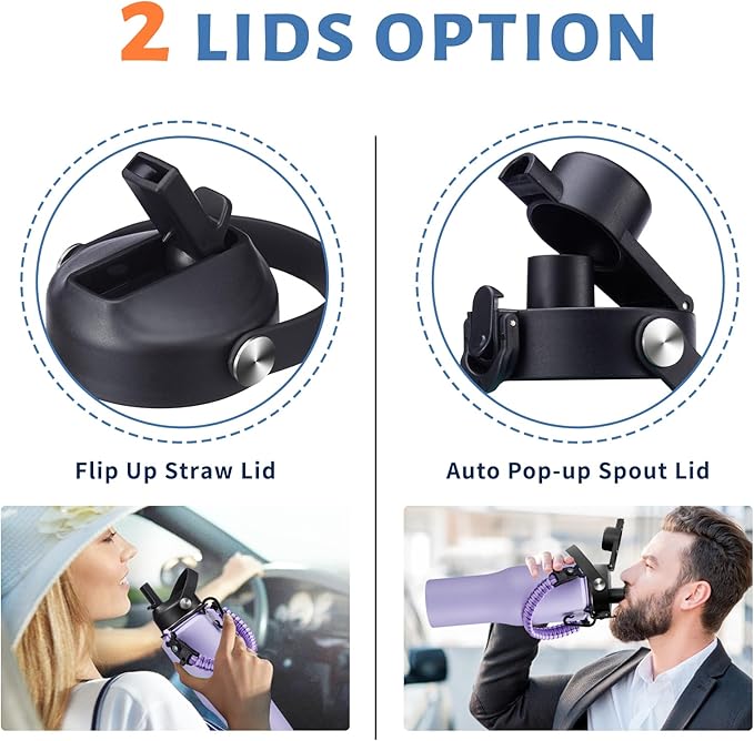 - LEAK-PROOF STRAW LID & AUTO SPOUT LID: This stainless steel tumbler thermal with straw and chug lid, both BPA-free, leak-proof and one-hand conctorl design, great car must have things!
