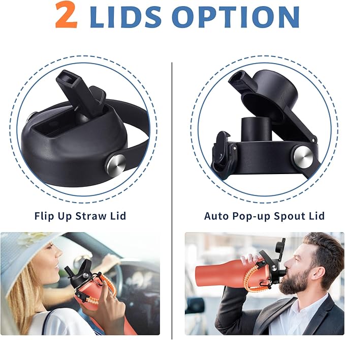 - LEAK-PROOF STRAW LID & AUTO SPOUT LID: This stainless steel tumbler thermal with straw and chug lid, both BPA-free, leak-proof and one-hand conctorl design, great car must have things!