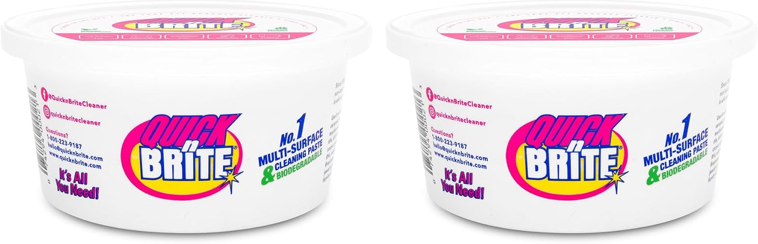 Quick 'n Brite All Purpose Cleaning Paste – Miracle Cleaner for Tough Stains | Eco-Friendly, Non-Toxic, Pet-Safe | Multi-Surface Stain Remover | Made in USA, 12oz (Pack of 2)