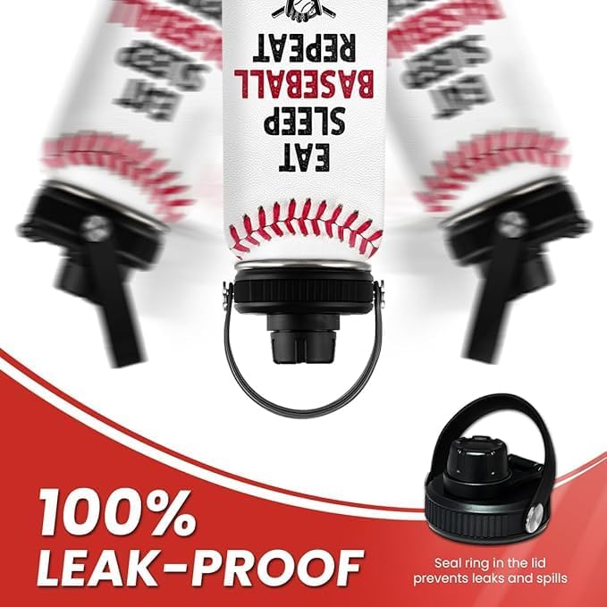 Baseball Water Bottle 32 Oz - Insulated Stainless Steel Sport Bottles with Lid - Baseball Gift for Men Players Fan Coach