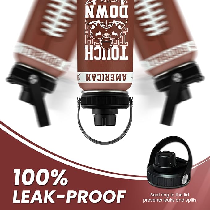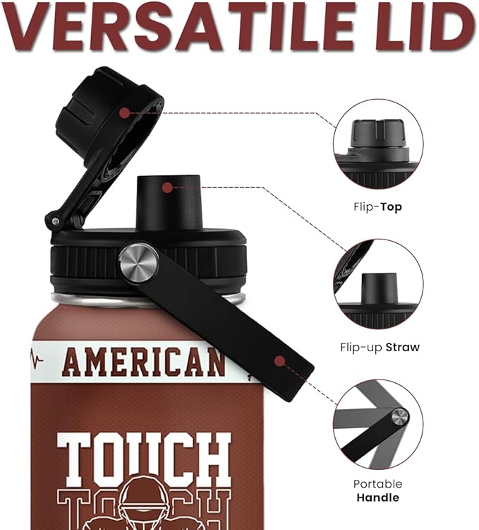 Football Water Bottle with Lid - 32oz Insulated Stainless Steel Sport Bottle - Gifts for Men Football Players Lovers Men