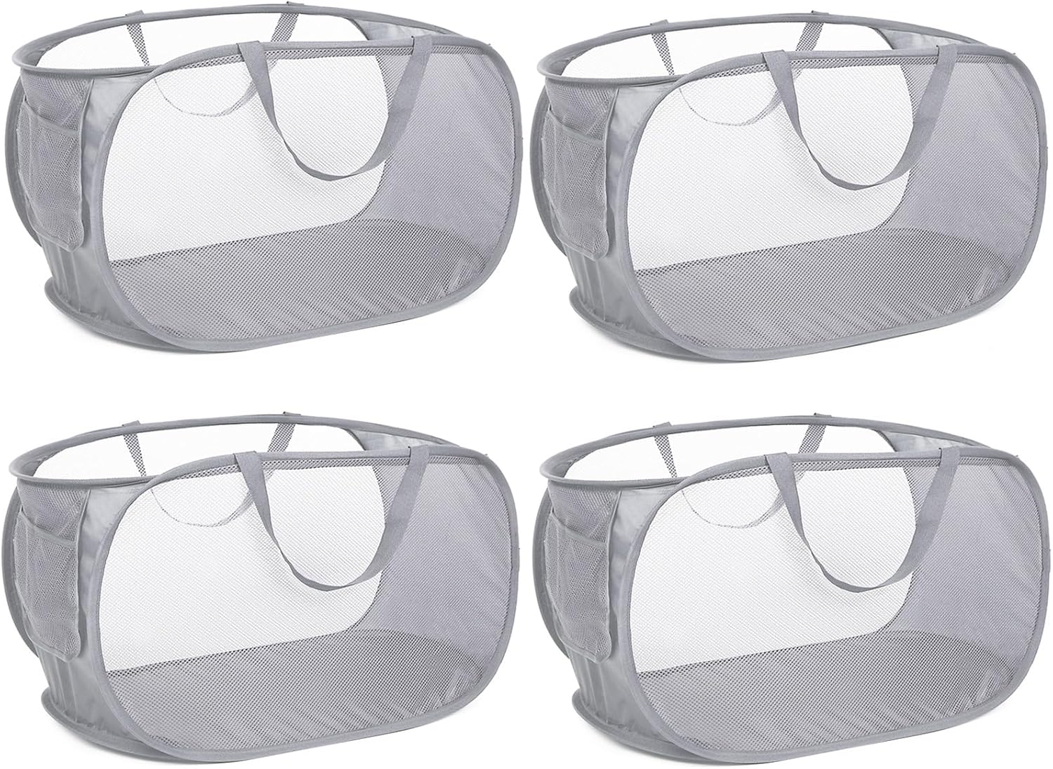 4 Pack Collapsible Laundry Baskets, Foldable Laundry Basket with Pocket, Durable Pop Up Hampers, Reinforced Handles Dirty Clothes Hamper for Laundry, Bedroom, Bathroom, Dorm, Travel or Camping Grey
