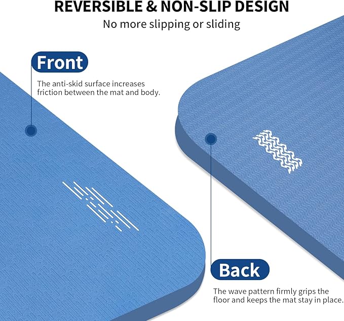 - 1/2" Thickness for Comfort & Protection: The thickness of this exercise mat is 1/2 inch which provides more stability and cushioning than thin mats. It is comfortable which can protect your knees and joints from injury during exercise.