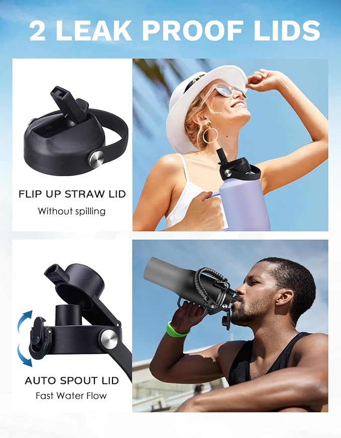 - LEAK-PROOF STRAW LID & AUTO SPOUT LID: This stainless steel tumbler water cup with straw and chug lid, both BPA-free, leak-proof and one-hand conctrol design, great car must have things!