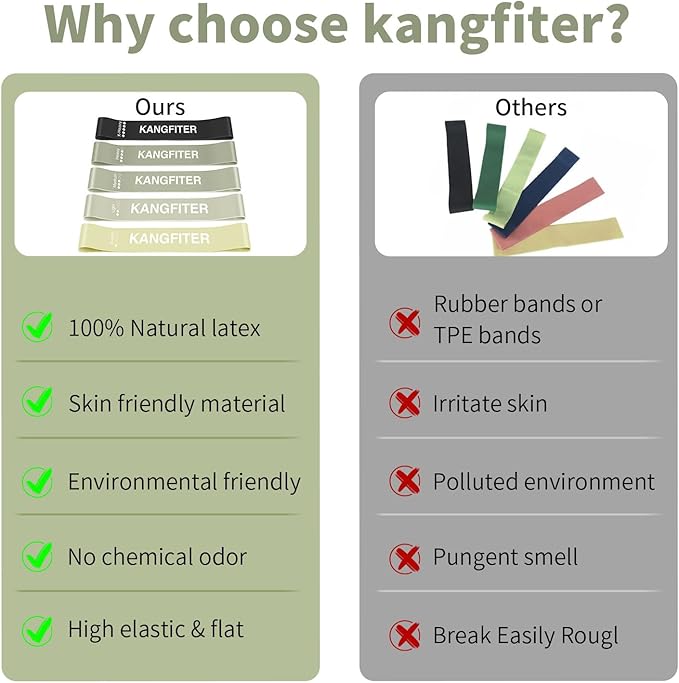 - 【NATURAL LATEX MATERIAL】: KANGFITER resistance bands are made of durable and skin-friendly natural latex, providing a premium and stable workout experience.All exercise bands are thoroughly tested before shipping.