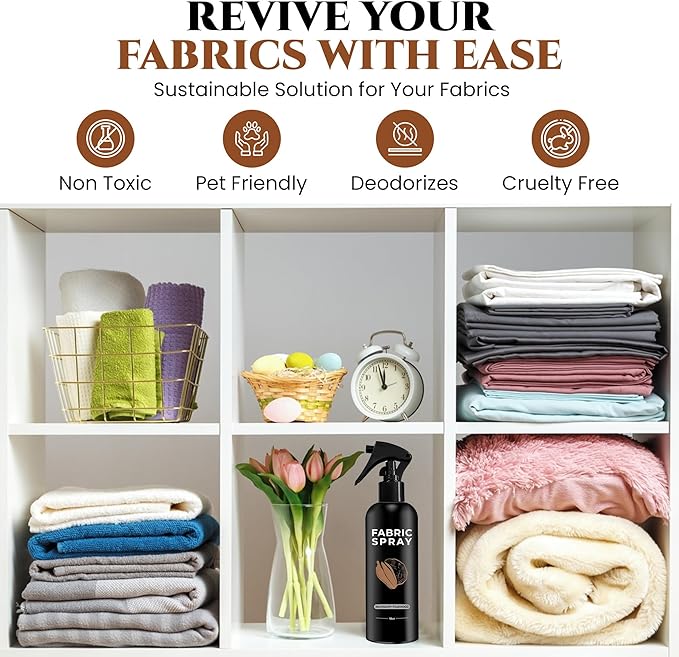 - MADE WITH ESSENTIAL OILS: Our Fabric Refresher Spray is more than just any other Frabric Spray for linens. It is a unique blend of essential oils that help you relax and clear your head.