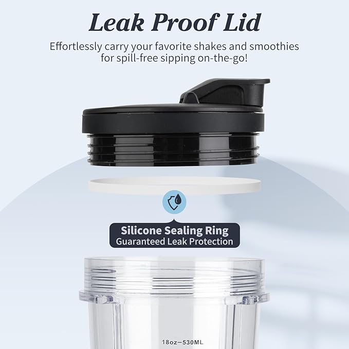- ENJOY YOUR DRINKS ON THE GO, MESS-FREE: Our specially designed to go lids feature a secure flip-top spout with an inner seal, creating a confident, leak proof closure. Blend your favorite smoothie or protein shake directly in the smoothie cup, twist on the lid, and you're ready for your commute, the gym, or a busy day out. The ninja cups fits easily into most car cup holders and bag pockets without drips or spills.