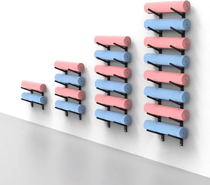 - 【Multi-functional storage rack】: The yoga mat wall rack can store your yoga mat, foam roller, yoga brick, resistance band. It can also store various fitness equipment such as basketball football. It can be installed in homes, offices, schools, shops and gyms.