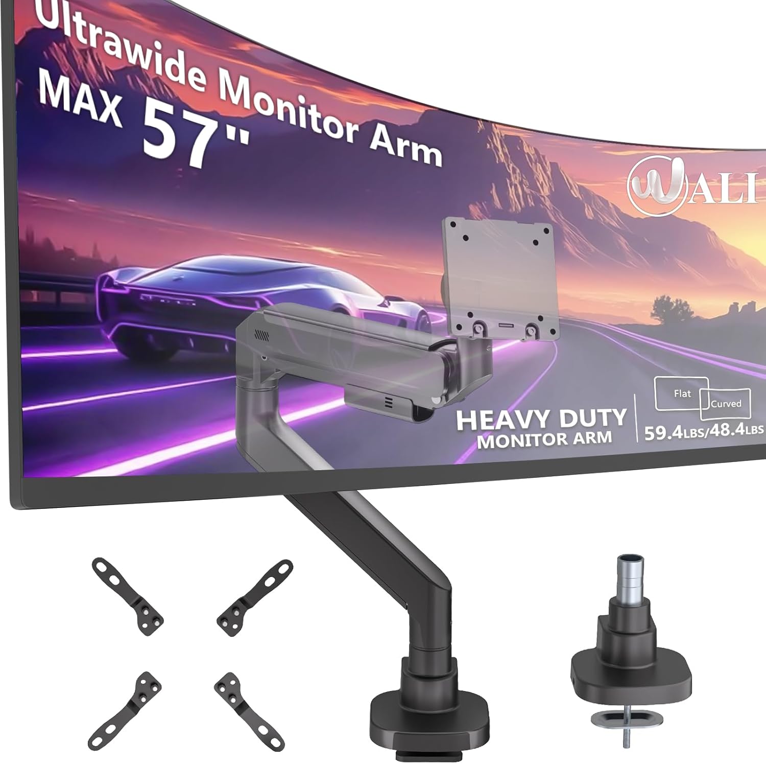 - Warm tips: Please confirm the VESA pattern and weight before purchase. some ultrawide monitors such as 49 55 57 inch will need to install a steel part which always comes with your monitor to get 75 x 75mm or 100 x 100mm VESA holes. By mounting your monitors on WALI heavy duty monitor arm, you can save a lot of desktop space and create a tidy and organized gaming space