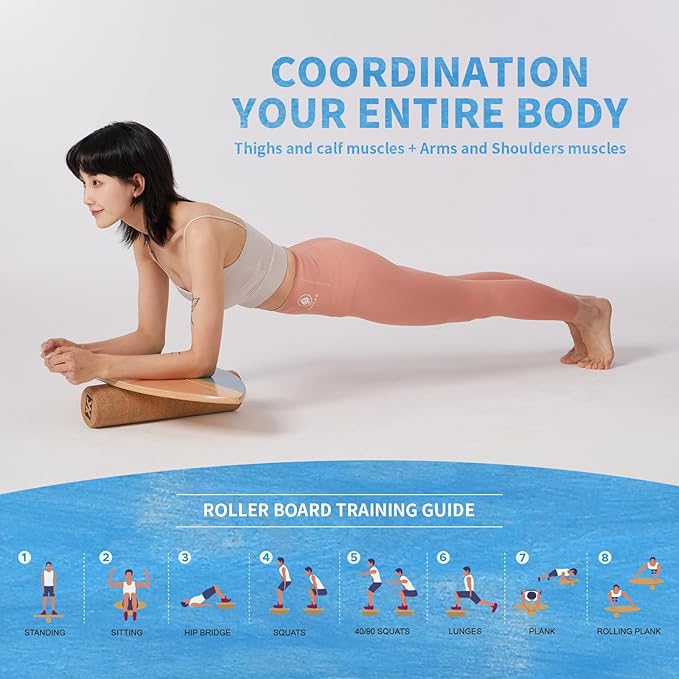 - WONβT SCRATCH FLOORS&EASY-GLIDE WOODEN ROLLER:The balance board surface is smooth and don't worry about damaging the floor.This roller also work great on different types of floor,including wood, carpet, cork, concrete,etc