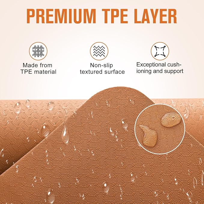 - DOUBLE NON-SLIP & ECO-FRIENDLY - Crafted with 100% natural rubber and recyclable TPE, it's PVC-free and leaves no extra burden on the planet. The rubber layer offers exceptional slip resistance, supporting your practice even during sweaty sessions. Meanwhile, the TPE bottom surface incorporates textured patterns that provide optimal traction and support.