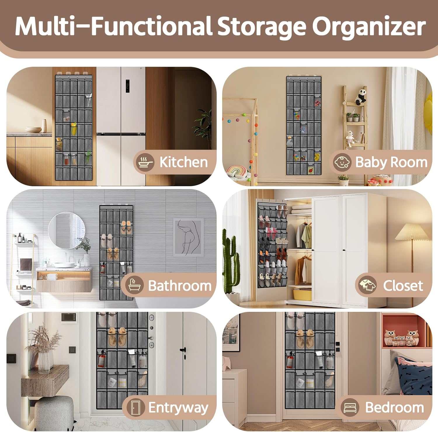 - 🍁✔️【MULTIFUNCTIONAL HANGING STORAGE POCKET 】:This over-the-door shoe organizer can not only be used to store shoes, but can also be hung on your bathroom door to store beauty products, toiletries and household cleaning supplies, or mounted on the back of your pantry closet door to store socks, scarves, undergarments, baby clothes and more. You can even store toys, snacks, and kitchen supplies. Such a practical door shoe rack can not only help you save space, but also keep your home clean and tidy, say goodbye to clutter, simply a good helper for home storage.