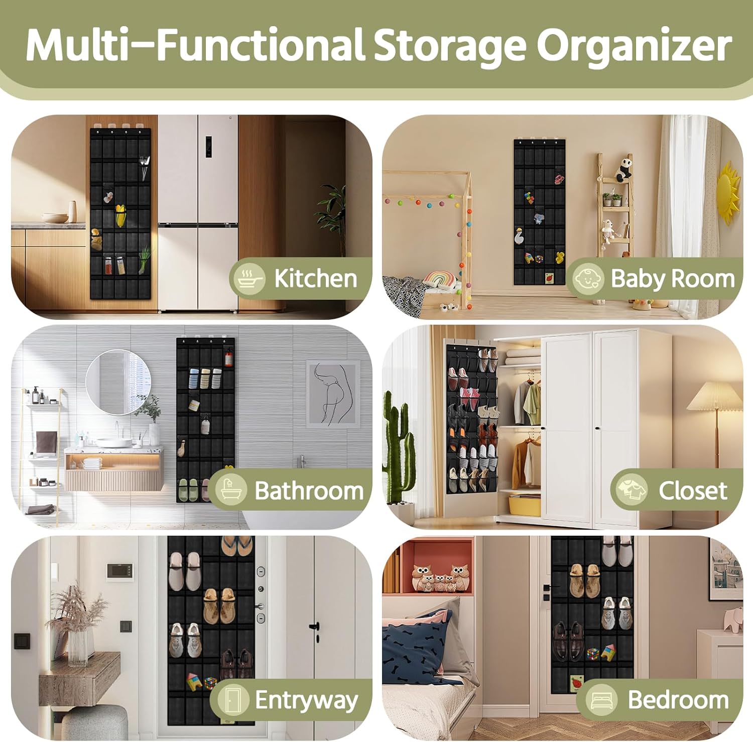 - 🍁✔️【MULTIFUNCTIONAL HANGING STORAGE POCKET 】:This over-the-door shoe organizer can not only be used to store shoes, but can also be hung on your bathroom door to store beauty products, toiletries and household cleaning supplies, or mounted on the back of your pantry closet door to store socks, scarves, undergarments, baby clothes and more. You can even store toys, snacks, and kitchen supplies. Such a practical door shoe rack can not only help you save space, but also keep your home clean and tidy, say goodbye to clutter, simply a good helper for home storage.