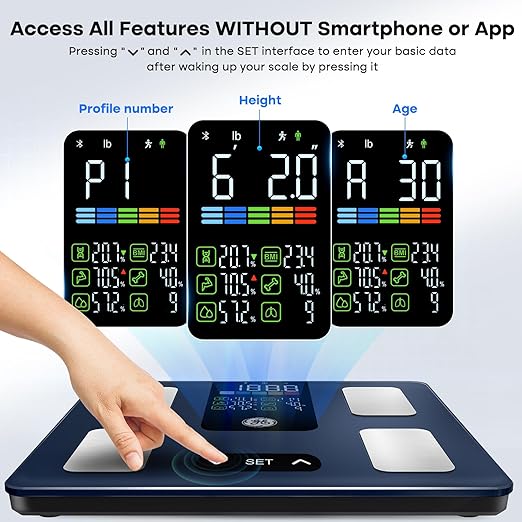- No Smartphone or App Required: Take control without needing an app or phone — you can easily select and confirm values directly on the scale’s screen for a streamlined, independent experience