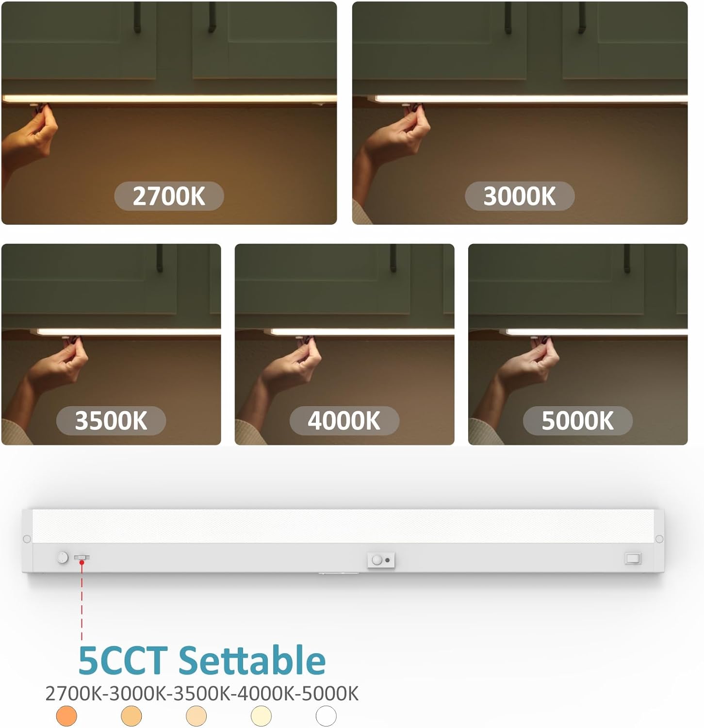 LED Under Cabinet Lighting Motion Sensored Hardwired with Built-in Dimmer, 32 Inch 16W Dimmable 5 Color 2700/3000/3500/4000/5000K, Linkable Eyes Care for Kitchen, Counter, ETL Listed, White