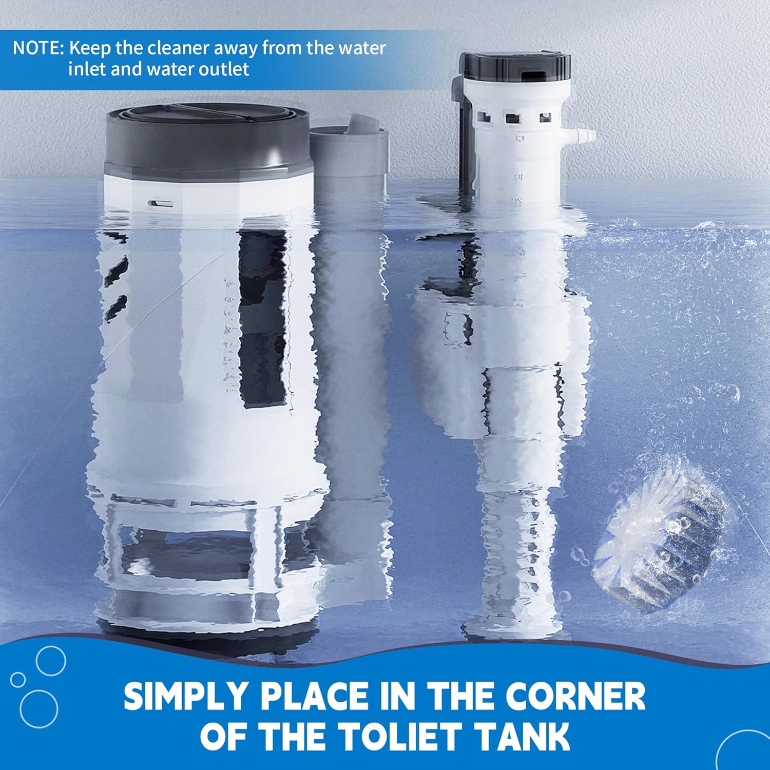 - Easy to Use: Simply place a piece of toilet tank cleaner tablet into the tank (away from the spout and inlet) and let it fully dissolve for at least 30 minutes;(Please note, do not remove the water-soluble transparent protective film)