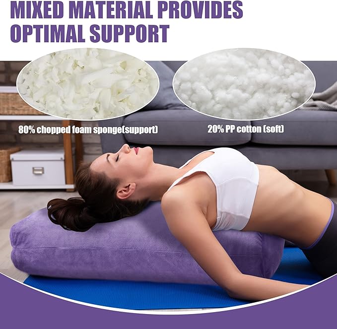 - 【Long-Lasting】: Yoga bolster is filling with 80% shredded foam + 20% microfiber. The shredded sponge can change its shape according to the contours of the human body and fit the contours of the human body better, while the sponge has excellent resilience and support, and won't collapse and flatten out with prolonged use. It is the perfect balance of support and softness