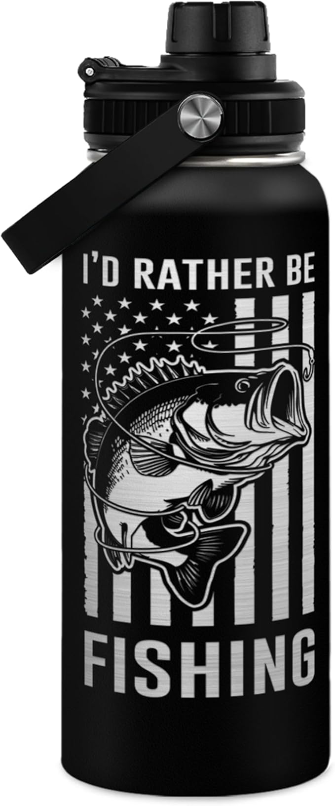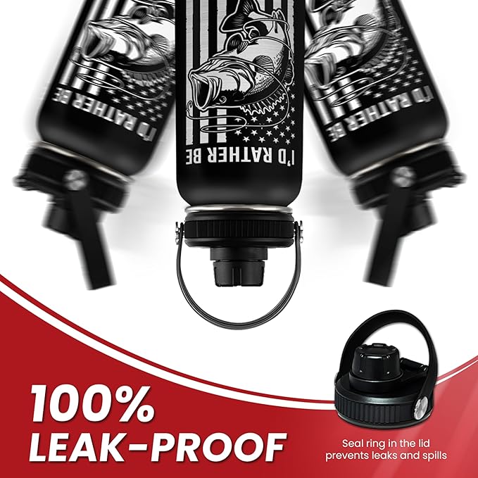 Fishing Water Bottle - 32oz Stainless Steel Insulated Bottles with lid - Deer Fishing Gifts for Fisherman Papa Dad Husband - Gift for Christmas Birthday Fathers Day