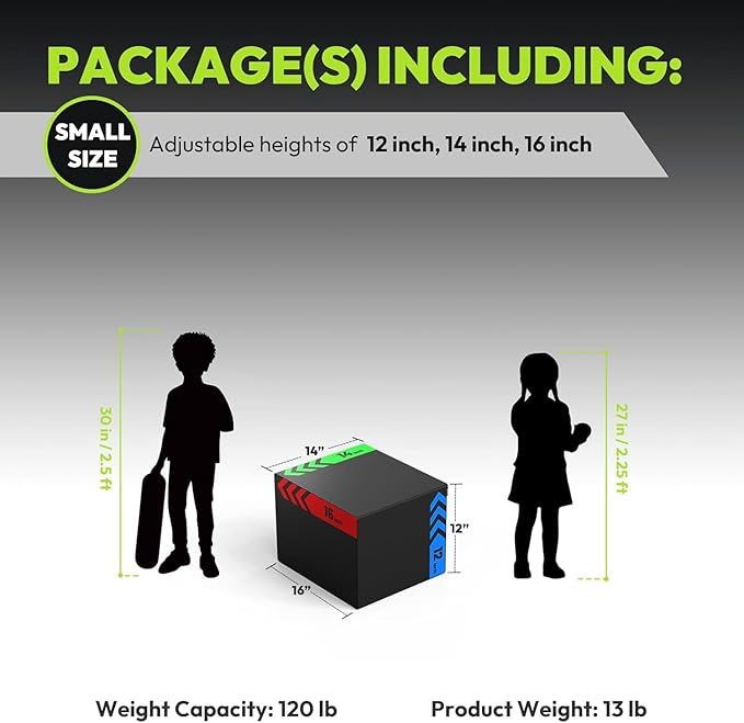 - 3-in-1 Size: Start at 12 inches and see how high you can go. When that gets easy, simply rotate the box to add 2 to 4 inches, pushing yourself to jump higher and burn more calories!