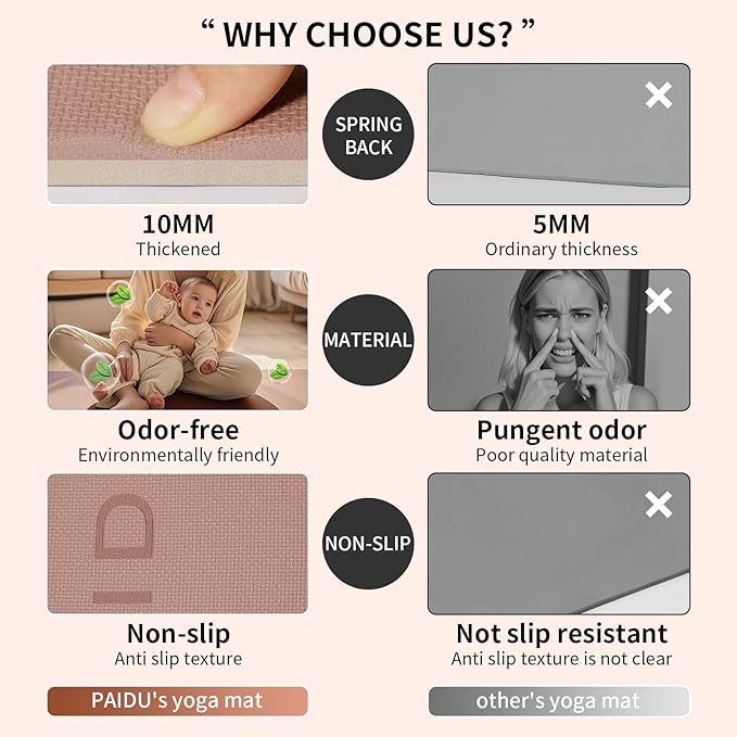 - HIGH QUALITY MATERIALS:Paidu yoga mat made from premium quality POE material, this material is the latest technological improvement to the traditional yoga mats. No latex, no PVC, or any heavy metal.This exercise mat for home workout is flexible, tear-resistant,and designed for long-lasting.durability.