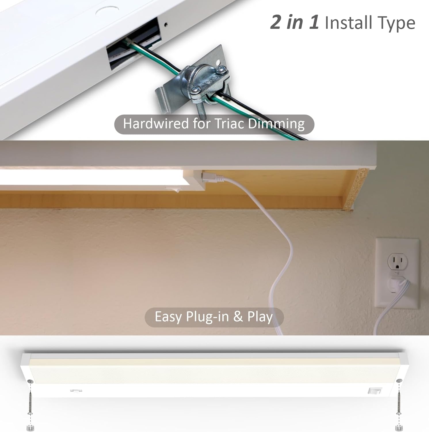 - Fast and Easy install, Linkable: Easy to Screw fix, package includes both Hardwired and Plug in accessories. Can also linked to another Under cabinet lighting with the linkable junctors